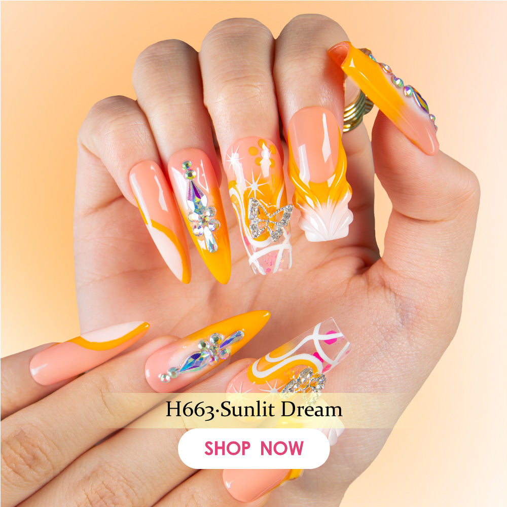 Golden Aura Combo Set Handmade Nails H682+T682