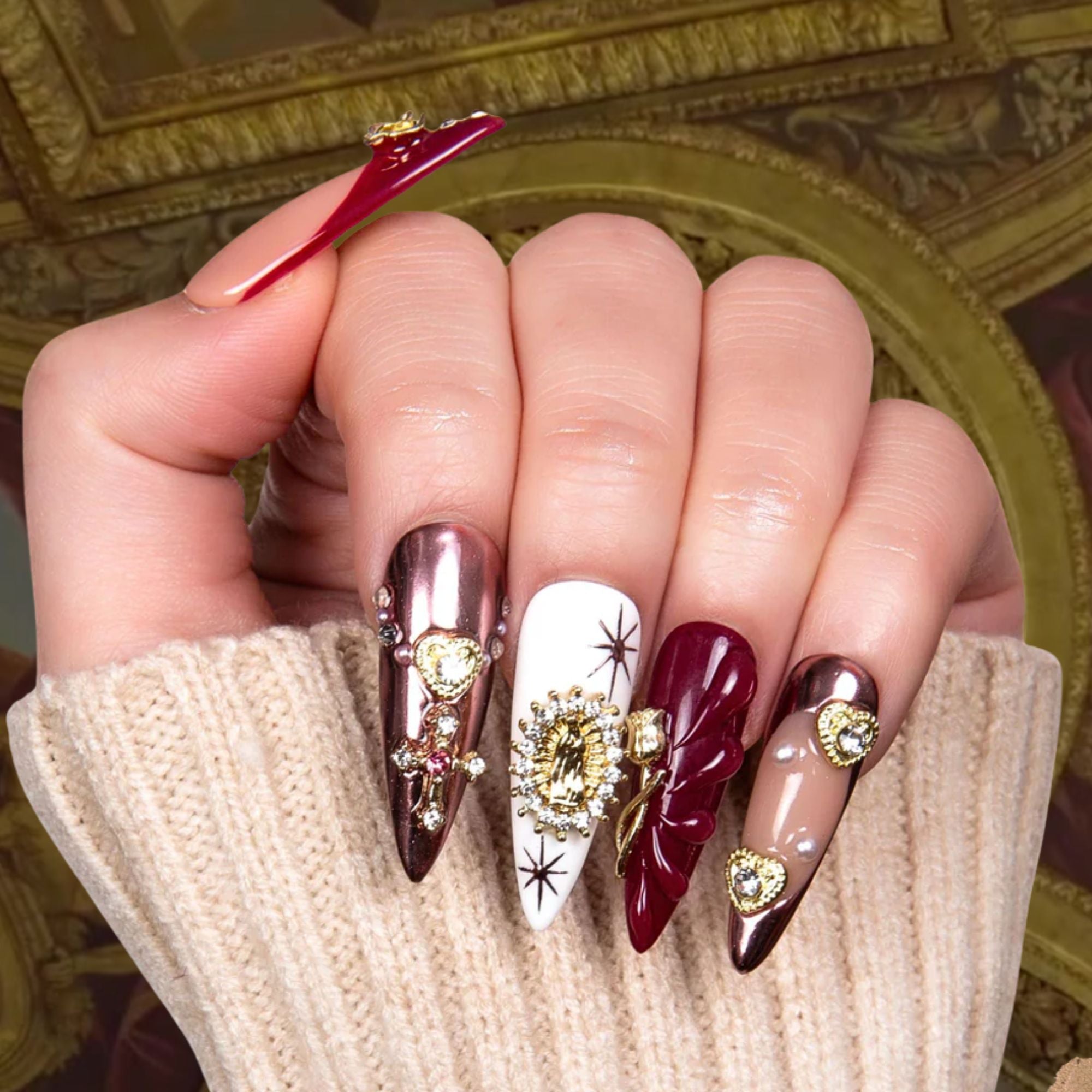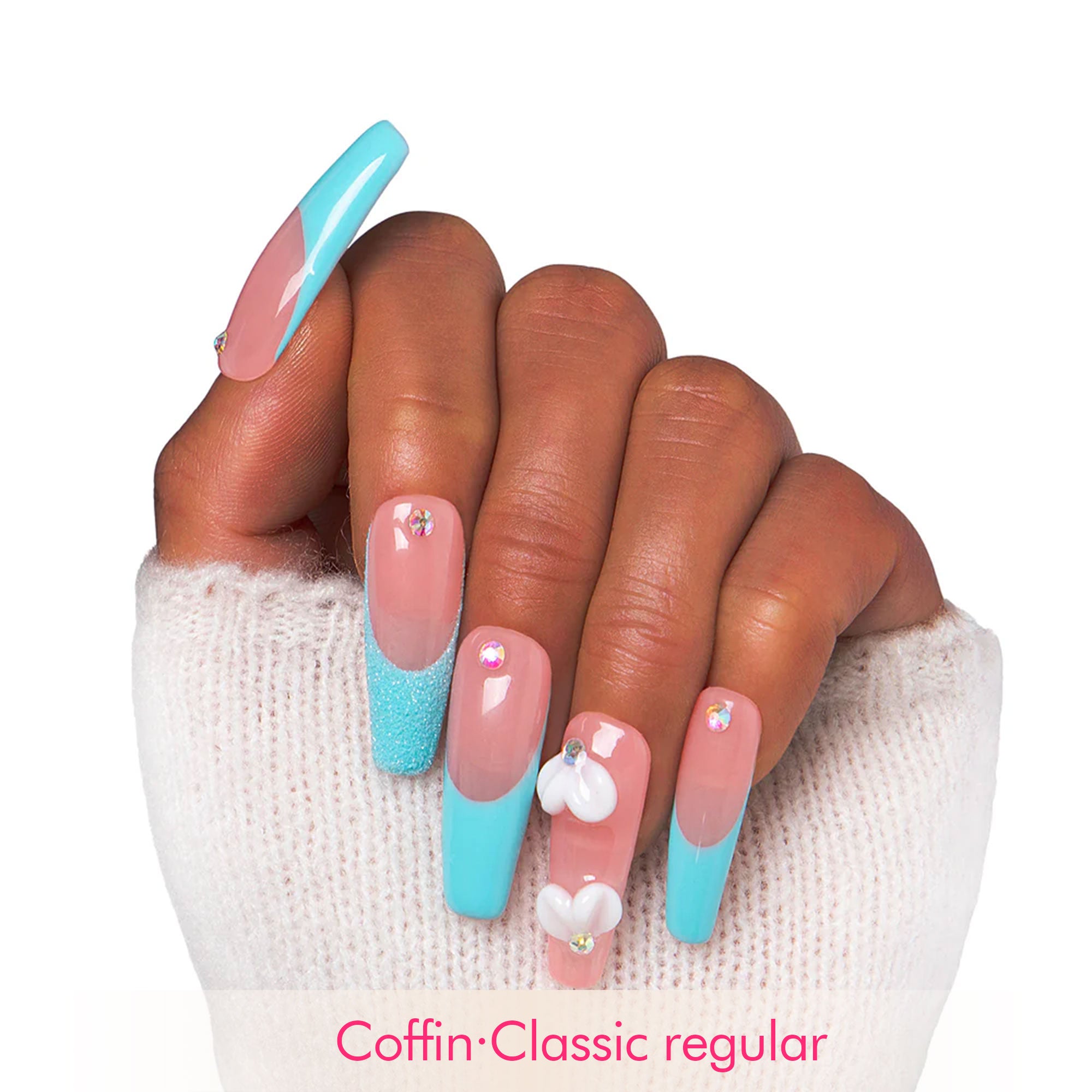 Applying our press-on nails is simple! Just select the right sizes for each finger, clean your nails, then peel off the adhesive backing and press firmly onto your natural nails. That’s it!