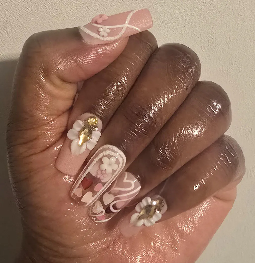 A set of handmade press-on nails;