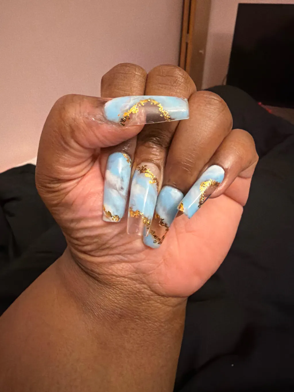 A design that captures the beauty of soft, Celestial Blue skies. The delicate wash of translucent blue swirls blend seamlessly into a dreamy, airy aesthetic. Flecks of gold foil shimmer add a touch of elegance and sophistication.