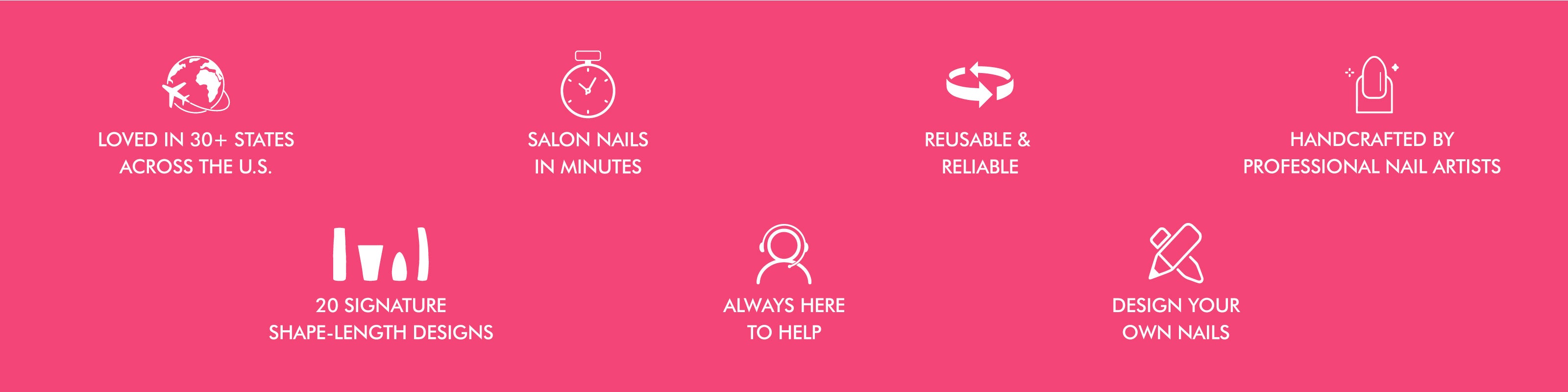 Salon-Quality Convenience: Enjoy the luxury of salon-quality nails in the comfort of your home. Our handcrafted false nails are inspired by salon acrylic nails, providing a professional finish that lasts for weeks with easy application in seconds.